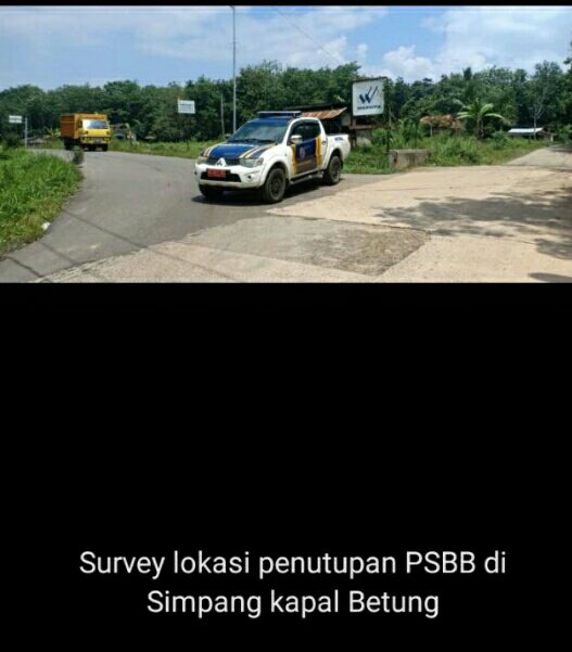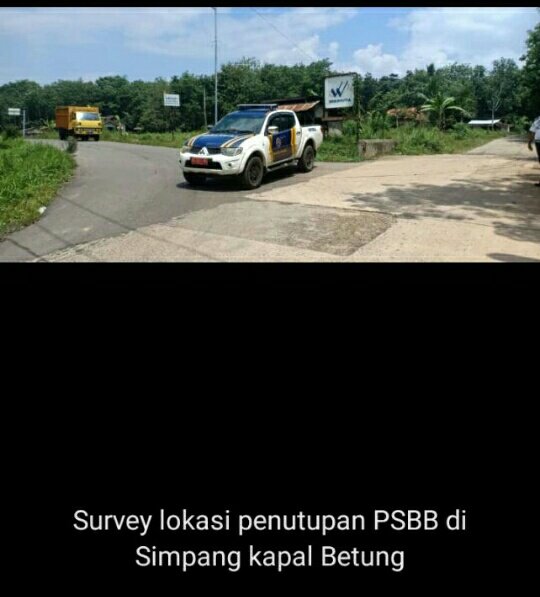 [20/4 17.58] +62 858-9638-8851: Adapun telah dilakukan Survey dibeberapa Titik Perbatasan masuk Kota Palembang ditempat petugas dari Dinas Perhubungan terhadap penutupan jalan kegiatan PSBB di Simpang kapsl Betung, batas Kota KM.12, Simpang Sungsi Gerang Plaju, batas kota Talang Jambe, Simpang Kebun Sayur Kenten Laut dan Simpang Tegal Binabgun Jakabaring.
